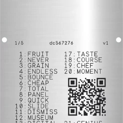 Stamp your own SteelQR with an automatic center punch. The QR-Code grid is precission lasered onto the brushed surface of the 3mm thick 316L stainless steel plates.
